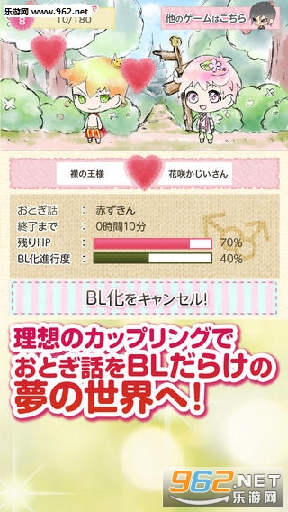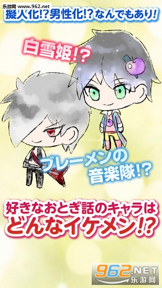 把童话的世界填满BL!在大家所知道的童话的角色中做BL情侣!?是腐女的BL放置游戏。童话的世界充满了BL的魅力,小兜帽也好,辉夜姬也好,桃太郎也好,不来梅的音乐队的驴子也大家都成为帅哥角色!