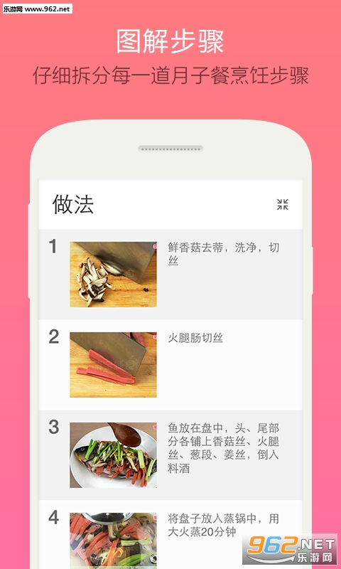 图片形式,仔细拆分每一道月子餐烹饪步骤,所有烹饪过程一目了然。