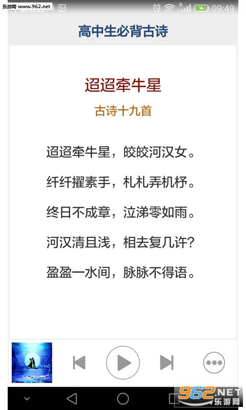 高中生必背古诗文app选编自古代汉乐府诗、北朝民歌和唐、宋、明、清等各个朝代着名诗人留下的69首经典诗词,全部是历代传诵的名篇佳作,是中国五千年诗歌。