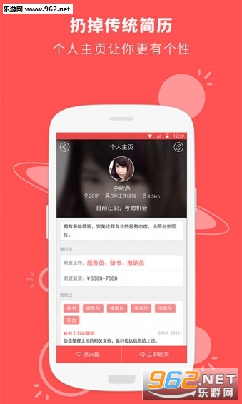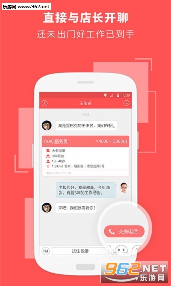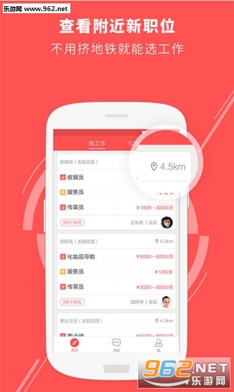 【求职更安心】与店长随时随地开聊,不用担心假职位、黑中介 【跳槽更简单】随时随地查看附近新职位,不用挤地铁就能换工作