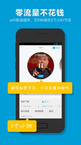 节目极速缓冲,离线收听:3分钟自动智能缓冲3个小时的节目,离线零流量收听。