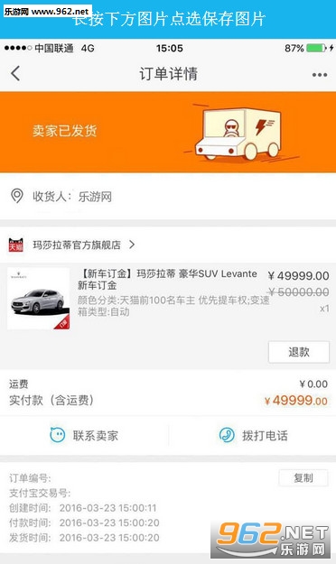 生成玛莎拉蒂天猫官方旗舰店订单图片