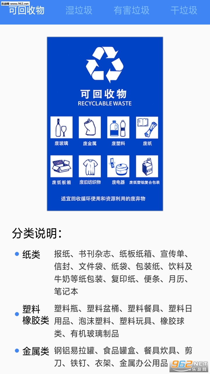 2、包含垃圾分类分类指引,垃圾分类投放说明,帮你轻松查找垃圾分类。