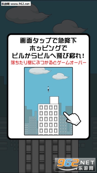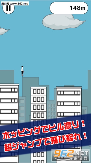 万一没有控制好撞上了楼房的墙壁或是掉到画面下方,就会导致游戏结束。想跳到尽可能远的距离其实并不难,关键还是要熟能生巧。比较有意思的是,随着玩家跳跃距离的增加,画面背景也会有所改变(比如从白天变成黄昏),这种设定也让游戏不会过于单调。