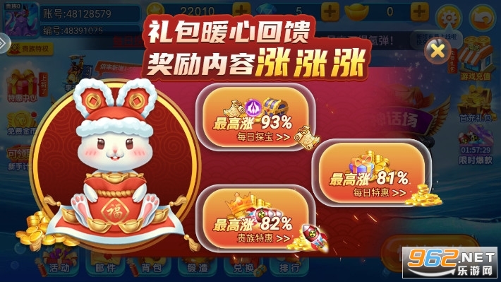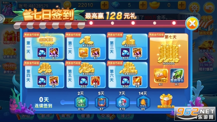 新手好礼:每天登陆送金币,连续登陆送的越多。