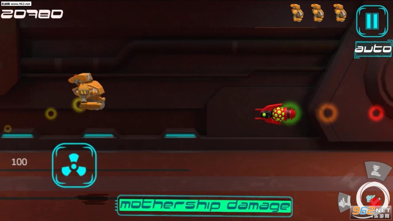 保卫母舰是一款科幻卡通画风横版动作射击手游,游戏中玩家将扮演太空母舰中的一个防卫机器人,最后一个被激活的你发现母舰已经被全面入侵,你只能凭借自己的力量夺回母舰,消灭入侵的外星生物。