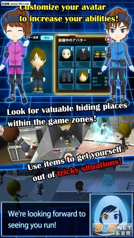 全员逃走中是一款根据日本同名综艺节目改编的休闲手游,游戏规则与原综艺节目基本相同,玩家需要在城市中躲避猎人的追捕,生存的越久奖金就会越高,同时还加入装备系统,增加更多的趣味元素,需要注意的是角色身上穿的装备会随使用次数耗损而降低能力值,这时就需要前往商店中修理装备了。