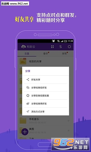 和彩云是中国移动旗下的云存储产品,可一键备份手机照片、短彩信,同步日历、通讯录,闪传文档,免费在线看视频,精美图片下载,智能分享资源。管理高效且操作方便,超强的全能换机功能,让你享受安全便捷的360度全方位云盘服务。