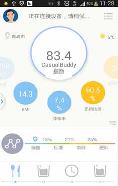 CasualBuddy app是海尔集团推出的健康管理软件,CasualBuddy app可以通过蓝牙实现称重,并且分析你身体的各项数据,提出健康的饮食运动建议。CasualBuddy,您身边的健康体重管理专家!