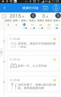 2.根据你的健康状况为你制定健康时间轴,在最适合的时间提醒你喝水、吃早餐等;
