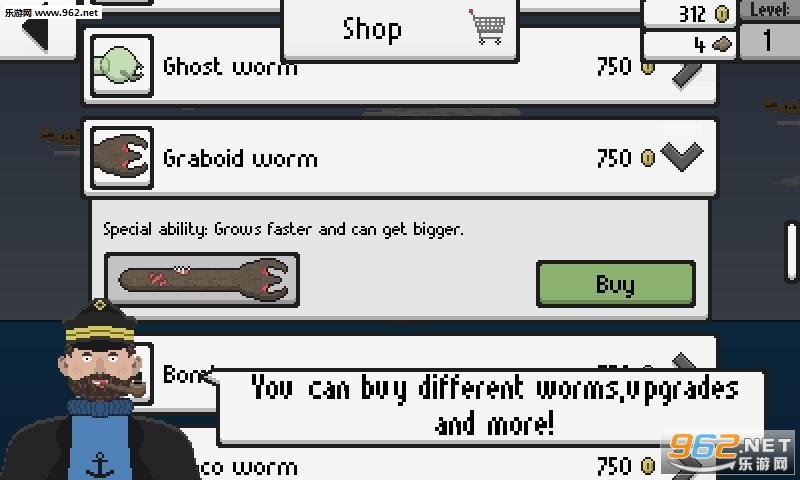 《深海死亡虫》是一款经典的横版过关游戏,怀旧的像素风格,初期的陆地版本,现在换成了海洋世界,你将见识到各种的海底生物,操作可怕的食人虫,不断前行去吞噬那些生物,状态自己,虽然采用的虚拟按键方式,但依然可见新颖的创意元素。
