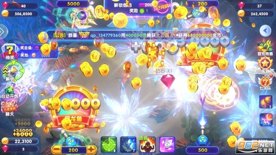 万人同时在线,四人同屏捕鱼,一起挑战强力BOSS!
