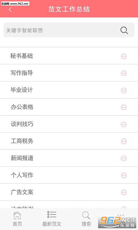 从小学生到大学生,到参加工作的人都可能会用得上本款软件哦,本软件有强大的后台数据,包含各行各业的范文写作,能随时查阅各类型的范文,根据关键字就能够找到你需要的范文。