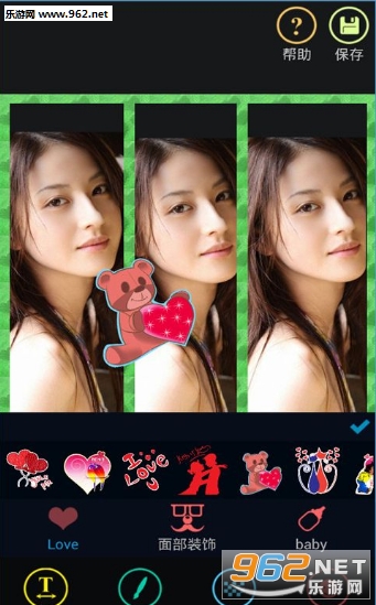 3、照片贴纸,包括爱贴纸,甜姐贴纸,可爱贴纸;
