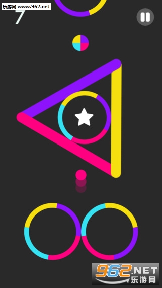 《色彩开关 Color Switch》是一款极度考验反应力和技巧的休闲娱乐游戏。游戏中,请点击小球,小心翼翼地穿过每一个障碍。小球在经过某些地方时会切换颜色,请注意这点!你必须按照每个对应的颜色去穿过,不要穿越不对应颜色的圈环,否则你就得重新开始游戏了!