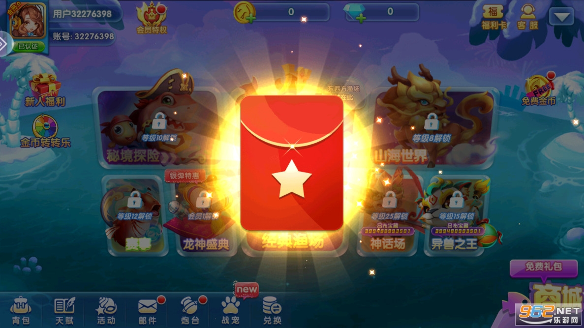 6.9900倍炮台升级开放,你就是捕鱼达人。