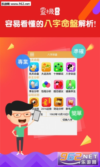 八字测算命理大师,随身查看运势运程。周易占卜测算,流年财运事业感情走向,最专业八字排盘应用。具有独特的神奇的未来预测功能,而且具有丰富的科学理论,是唯一一个经过科学鉴证的解说命理工具。