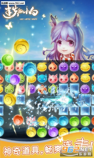 迷失的小白是一款消除类休闲闯关手游,名叫小白的精灵少女迷失在了森林中,你需要帮助她找到回家的路,通过消除一个个小精灵来闯过关卡,唯美的场景以及丰富有趣的道具玩法带给你愉快的休闲体验,精心设计的丰富关卡等你来挑战!