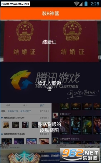 装b神器app下载最新版:是一款强大的装逼神器,想愚乐愚乐朋友吗?快来晒晒你的结婚证、房产证等等,哈哈,让你的朋友圈惊动就是这么简单!欢迎有需要的朋友下载体验!装b神器下载地址!
