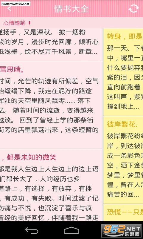 情书大全app是专为情书书写打造的应用,能随时查看各种情书,甚至包含搞笑情书和浪漫情书,拥有真挚的感情,能完美表达你内心的情谊,是您写情书的好帮手。