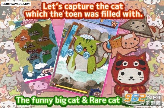 《一起来点击猫咪吧》游戏内设定了一个因猫增殖机故障而被猫型机器人占领的世界,你要做的事情,就是拿起这跟逗猫棒,周游全国地抓到它们。目前的 1.0 版本可供选择的关卡只有关东七县,每个县含三种难度各三关可以挑战。七个县仅仅占据了地图上很少一部分,不过看起来只要下载量令人满意,YUKI Intepress 未来会将舞台扩张至全国。