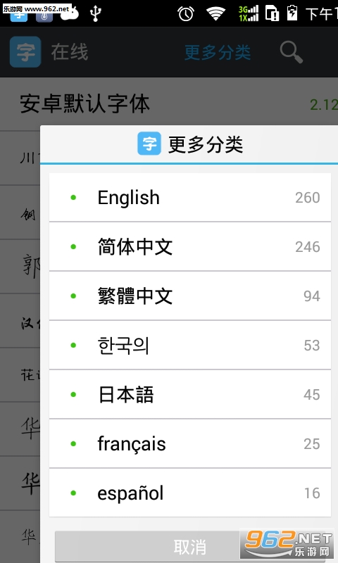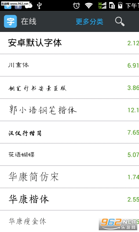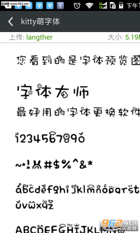 3.专门是为安卓手机制作的字体管理软件,有最热们的徐静蕾字体、华康少女字,微软雅黑等多种字体,一键下载,断点续传,一键更换
