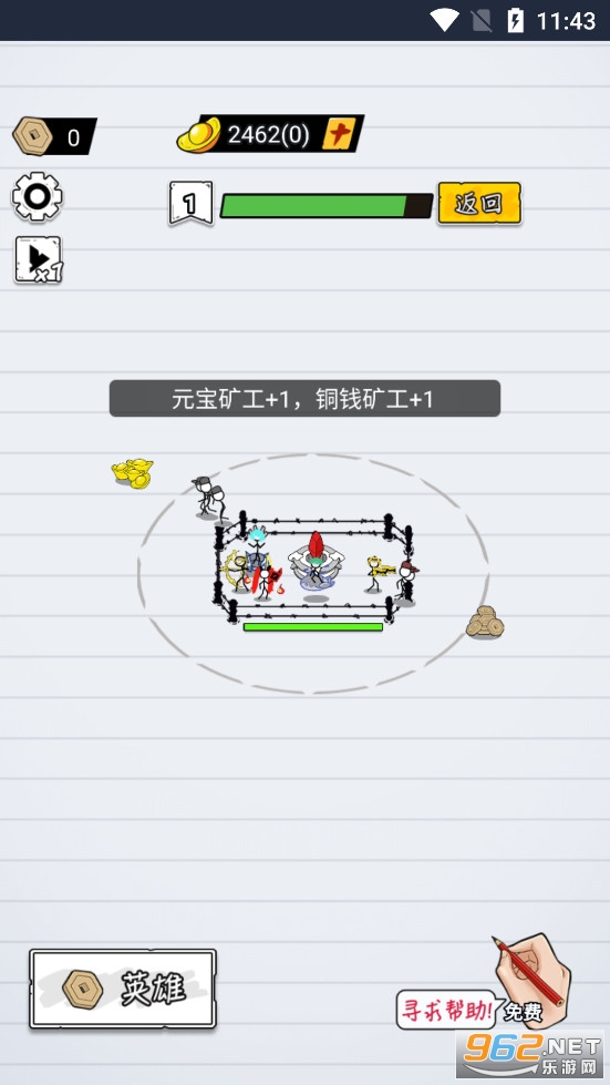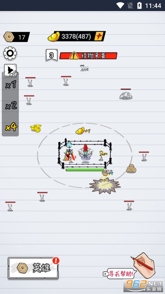1、火柴人简单的画风,四个火柴人的回城之路完全取决于你,运用你的技能收割一波又一波的怪物,击退一波又一波袭来的怪物,成功返回城市。
