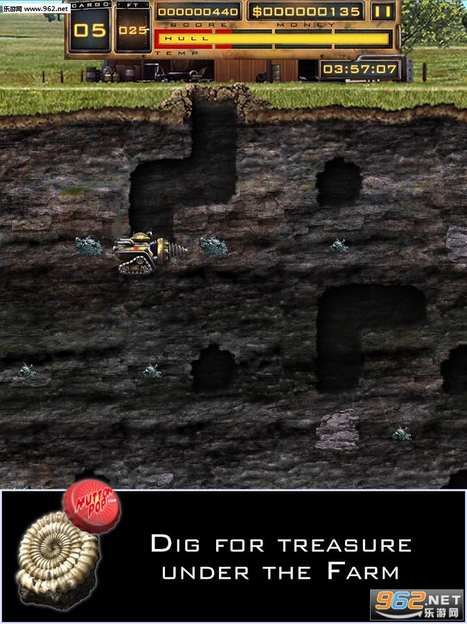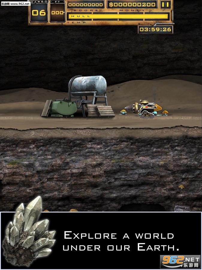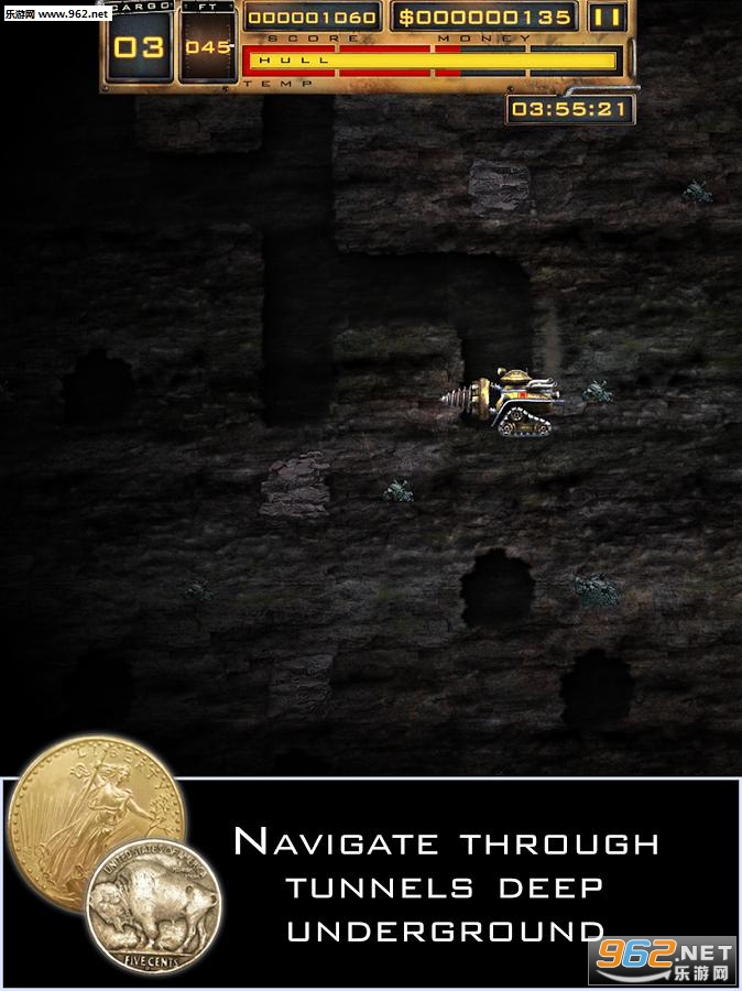 游戏的操作非常简单,你可以通过平屏幕滑动来控制机器的运作,同时也可以通过屏幕右下角的虚拟按键控制,此外你还可以通过上方向键让机器飞起来,你可以通过左下角的仪表观察机器目前的状态如油量、车身负荷、矿石负载之类!