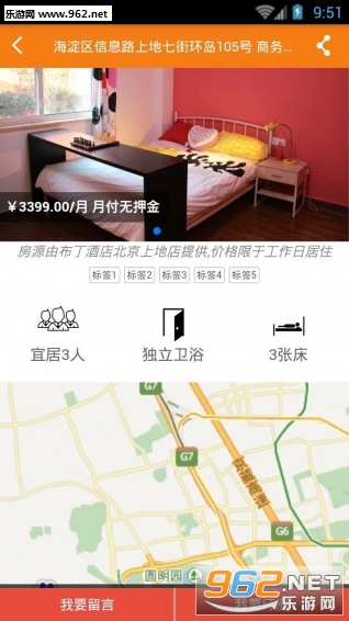 查找房源。根据城市、商圈、当前位置查找;根据地图查找;