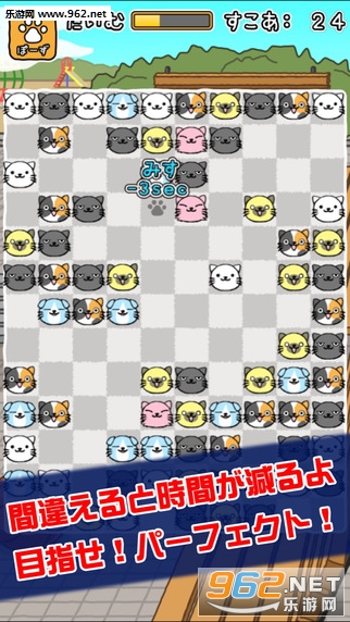 万一哪一次要是点错了,没有成功消除掉猫咪,就会把当前剩余游戏时间减少三秒。因此就要求玩家眼明手快,在规定的时间内尽可能地不出错,消除掉越多的猫咪越好。