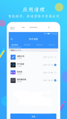 软件清理:一键查看手机软件使用频率和软件大小,快速清理不常用的手机软件;