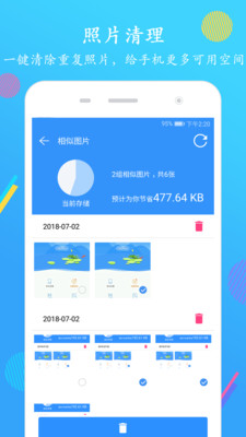 相册清理:智能识别相似或重复照片,清理空间,释放内存;