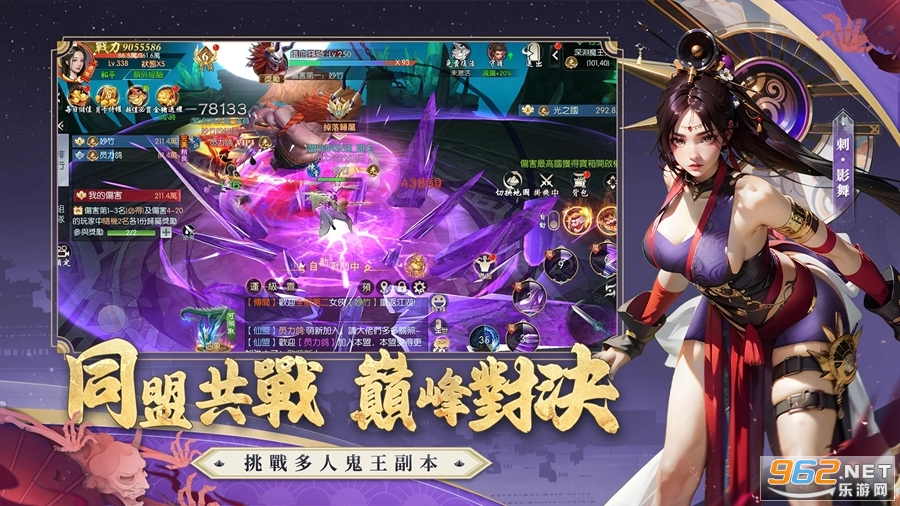 组成同盟,一同挑战多人鬼王副本,体验巅峰对决的刺激感觉,争夺丰富奖励。