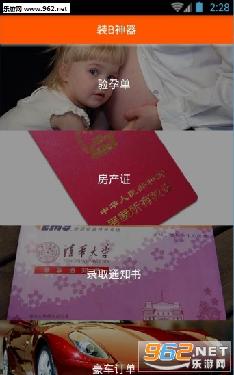 装b神器app下载最新版:是一款强大的装逼神器,想愚乐愚乐朋友吗?快来晒晒你的结婚证、房产证等等,哈哈,让你的朋友圈惊动就是这么简单!欢迎有需要的朋友下载体验!