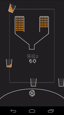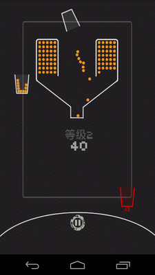 100个球安卓游戏开始白色的杯子会绕着倒栽瓶口转圈,手指按住屏幕倒栽瓶口就会打开,手指离开屏幕瓶口就会关闭,目的是要用转动的杯子接住掉落的黄球,杯子的数目是既定的,如果在循环中的杯子没有接到小球,便会被淘汰,而分数到达一定程度就会出现变了颜色的杯子。