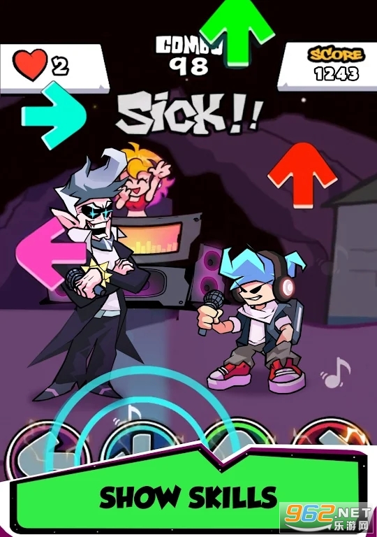 玩法:到达得分区时点击彩色箭头,跟随节奏,击败所有敌人,赢得你的尊重,赢得女友的芳心!
