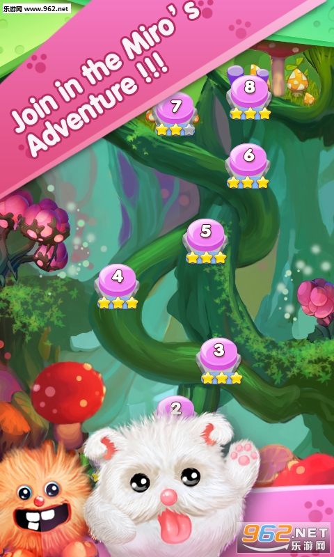 《米罗的冒险》是一款画面清新舒适,小怪物也很可爱的休闲娱乐类消除游戏,米罗是一种可爱的小怪物,十分普通的三消,有趣的画面,好玩的角色,都增色不少。