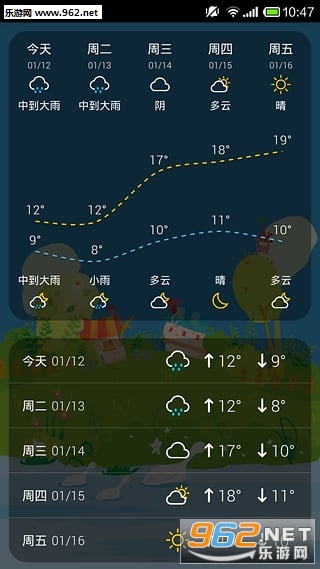 《几米天气app》是一款天气预报类生活服务软件,虽然现在很多手机自带天气预报功能,但是观赏性都不是很强,本款软件主打Q萌卡通小清新主题,根据不同天气呈现不同的美丽景象,不管是什么样的天气都能够给你带来好心情!