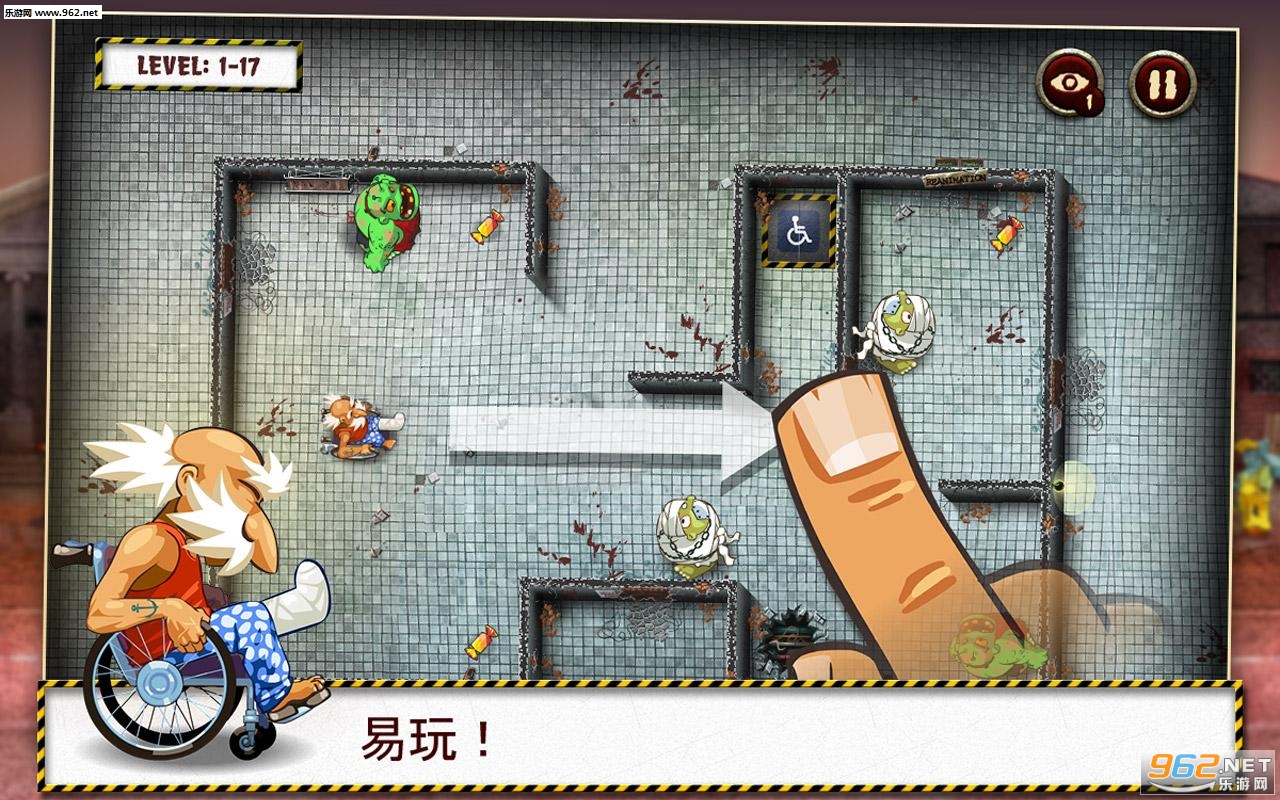 威利爷爷的大脑可能不是最新鲜的,但他不想大脑一下被僵尸吃掉!只要他的轮椅还有刹车功能...勇敢去面对疯狂拼图,帮助威利安全通过僵尸地带。