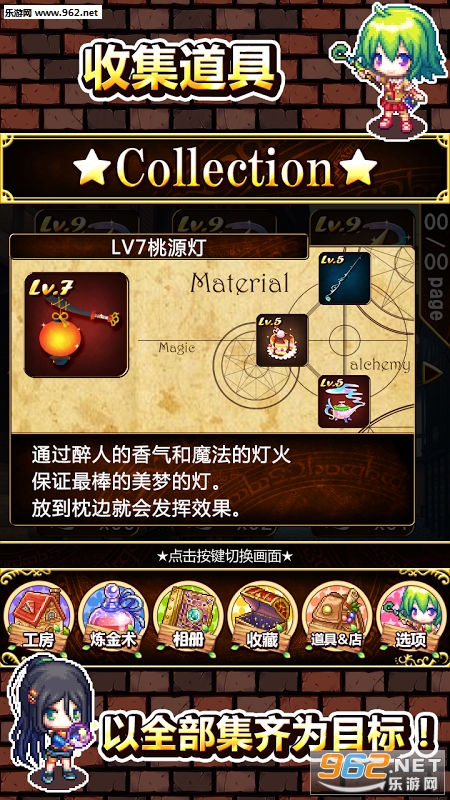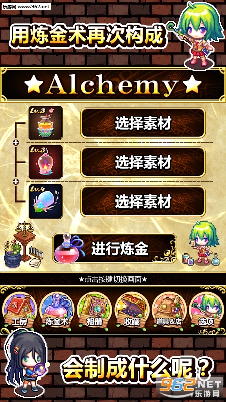 通过“炼金术”合成收集到的素材!不断收集合成,升华为更高等级的道具。