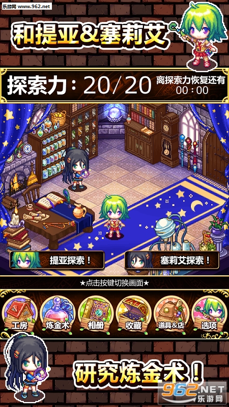 魔法使的小小工作室是一款日产炼金少女题材动漫风经营收集向休闲RPG手游,游戏中玩家将帮助萌妹纸提亚和赛莉艾一起展开炼金冒险之旅,你可以探索不同的场所来获得材料,通过炼金来得到各种道具,而收集有趣的道具和解锁丰富的剧情将给你带来无穷的乐趣。