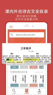 2. 支持古文翻译,收录海量小初高中课内文言文和古诗,让你作业考试不再担心,还可以自动对照每一句的原文和译文。