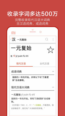 1. 收录完整《现代汉语大词典》、《古代汉语字词典》及超过500万条字词,词语辨析、成语故事、百科样样有,比新华字典能查到的内容更多!