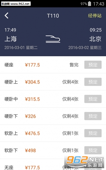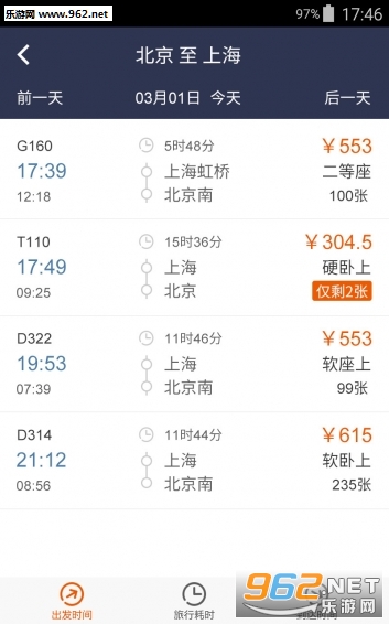 车票查询 实时查询12306官网列车时刻、余票、价格;