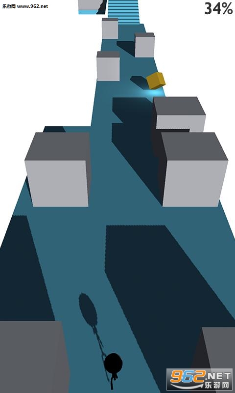 怀疑这款《火柴人方块阵跑酷 Stickman Cubed》的作者是否有童年阴影,反正关卡是一样的,多练总能跑过去,上面有个进度,100%会怎么样不知道,因为没跑到过。