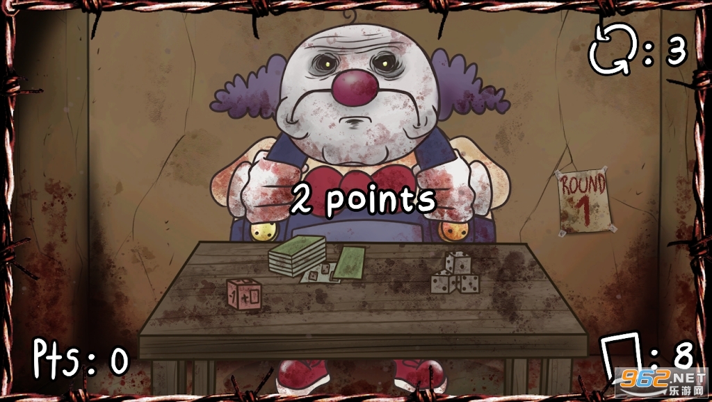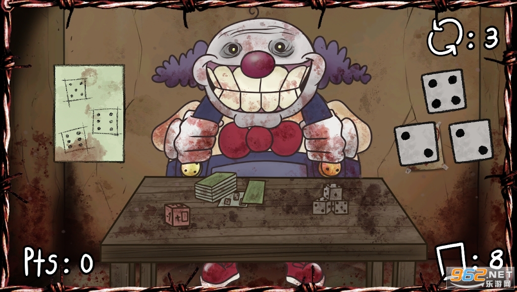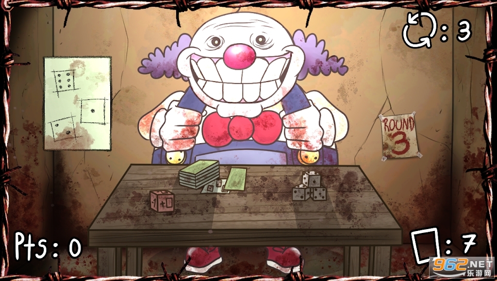 你能在他的小游戏中打败这个小丑吗? 匹配出现在您刚刚获得积分的卡片上的数字,将进行 5 轮比赛,如果您设法通过每轮至少 10 分,您将获胜。 如果你在回合结束时没有达到 10 分,那么你将成为小丑的食物。 和这个小丑一起玩,成为少数能在他可怕的数字游戏中幸存下来的幸运儿之一。