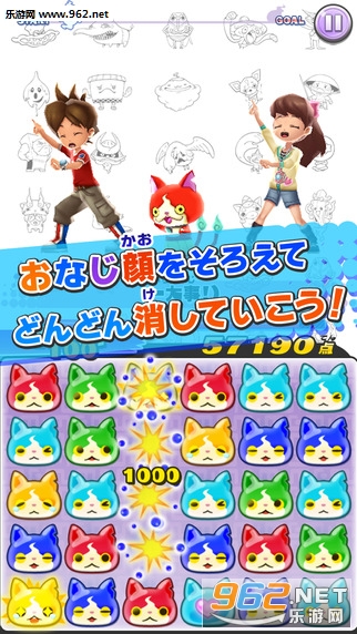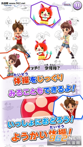 《魔鬼体操:消除大战(ようかい体操第一)》游戏“妖怪手表”免费应用!和朋友们们快乐的拼图。喵!用谁都可以玩的简单操作,从大人到孩子都不由得来了!配合轻快的音乐跳舞,一起享受吧。在限制时间内取得高得分吧,同色的猫纵或横三个以上就能进行一次消除,感兴趣的玩家们快来下载试试吧。