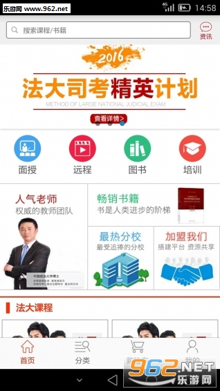 《法大司考app》是一款为广大学子打造的司法考试学习软件,软件中有着众多名师在线授课辅导,还有着不同的分类,不同的级别有着不同的培训内容。