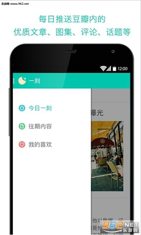 豆瓣一刻安卓版是一款优质内容精选的手机软件,用户可以在这里阅读到很多各种类型精彩软文,轻轻松松的打发闲暇时光。喜欢瓣的不妨来体验下这款小清新应用。它是一款不能简洁更多的阅读器产品。所有界面可以以上三张图概括,是一个纯阅读的环境。它时是把发表在日记、相册等中的UGC内容作了精选。支持分享到、、朋友圈等多个社交网络。