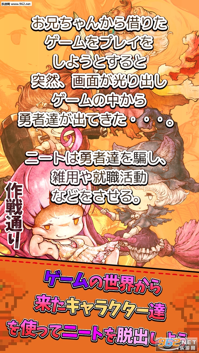 尼特主人公突然收到魔王的预告书,一周之后魔王将来到你的家中!为了抵御魔王的来袭,从电视游戏中突然出现了一批神秘的勇者们!在魔王来袭之前,与勇者们一起工作吧!